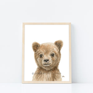 • ORIGINAL SIGNED WATERCOLOR FINE ART PRINT: Bear Portrait Fine Art Print (without frame) created from Our Beautifully Detailed Original Watercolor Painting. The endearing animal print is signed and dated by the artist on the back. Perfect for any age (child, baby, adult) and gender (girl or boy). Long lasting modern wall art for your baby's nursery, child's bedroom, kids' playroom, family room, or den.