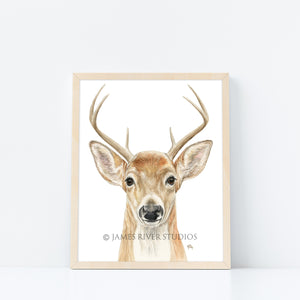• ORIGINAL SIGNED WATERCOLOR FINE ART PRINT: Buck Portrait Fine Art Print (without frame) created from Our Beautifully Detailed Original Watercolor Painting. The endearing animal print is signed and dated by the artist on the back. Perfect for any age (child, baby, adult) and gender (girl or boy). Long lasting modern wall art for your baby's nursery, child's bedroom, kids' playroom, family room, or den.
