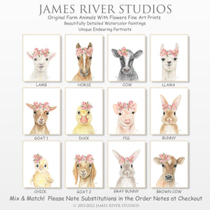 • ORIGINAL SIGNED WATERCOLOR FINE ART PRINTS: Unique set of 3 individual Farm Animal Portraits with Flowers Fine Art Prints (without frames) created from Our Beautifully Detailed Original Watercolor Paintings: Lamb, Pig and Cow. Each endearing animal print is signed and dated by the artist on the back. Perfect for any age (child, baby, adult) and gender (girl or boy). Long lasting modern wall art for your baby's nursery, child's bedroom, kids' playroom, or family room.