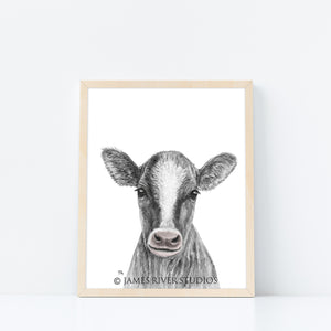 • ORIGINAL SIGNED WATERCOLOR FINE ART PRINT: Cow Portrait Fine Art Print (without frame) created from Our Beautifully Detailed Original Watercolor Painting. The endearing animal print is signed and dated by the artist on the back. Perfect for any age (child, baby, adult) and gender (girl or boy). Long lasting modern wall art for your baby's nursery, child's bedroom, kids' playroom, family room, or den.